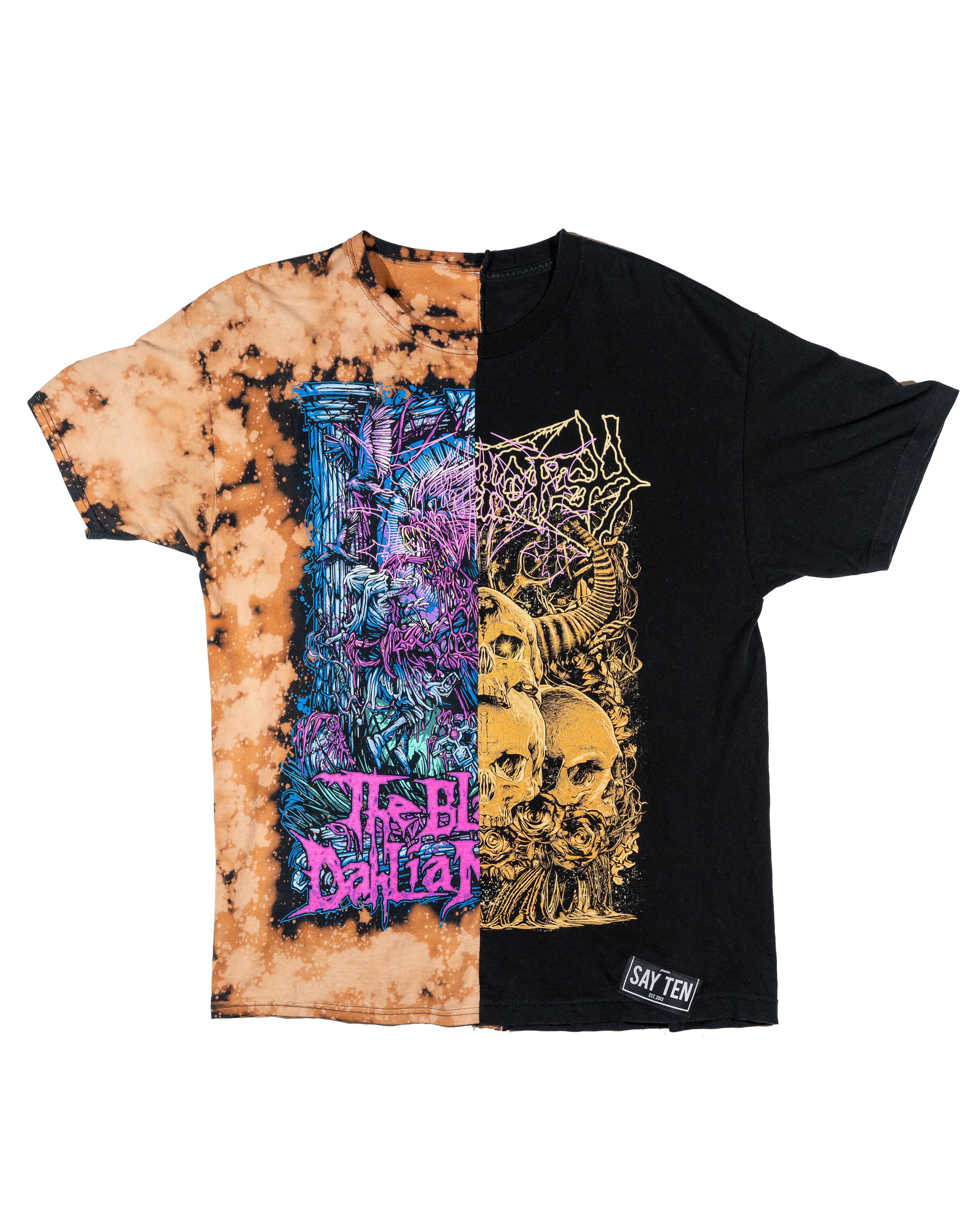 One off shirt, X-LARGE, split tee, hand sewn, 50% of the shirt has been bleached, 100% cotton, screen print graphic with pink panther color SAYTEN metal logo screen printed on top, with SAYTEN label sew on. All hand made not another one in existence.