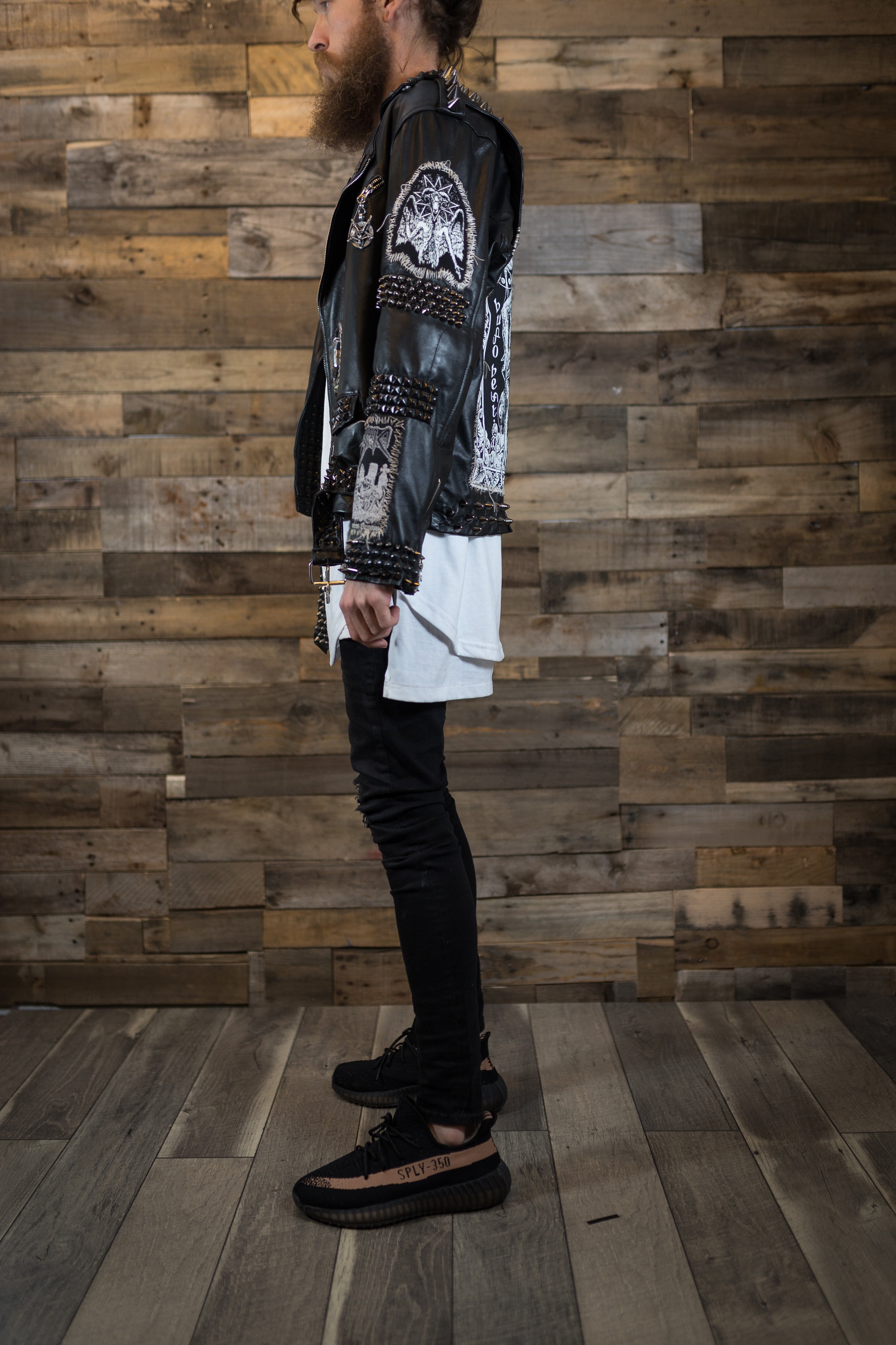 Genuine leather, fully studded.