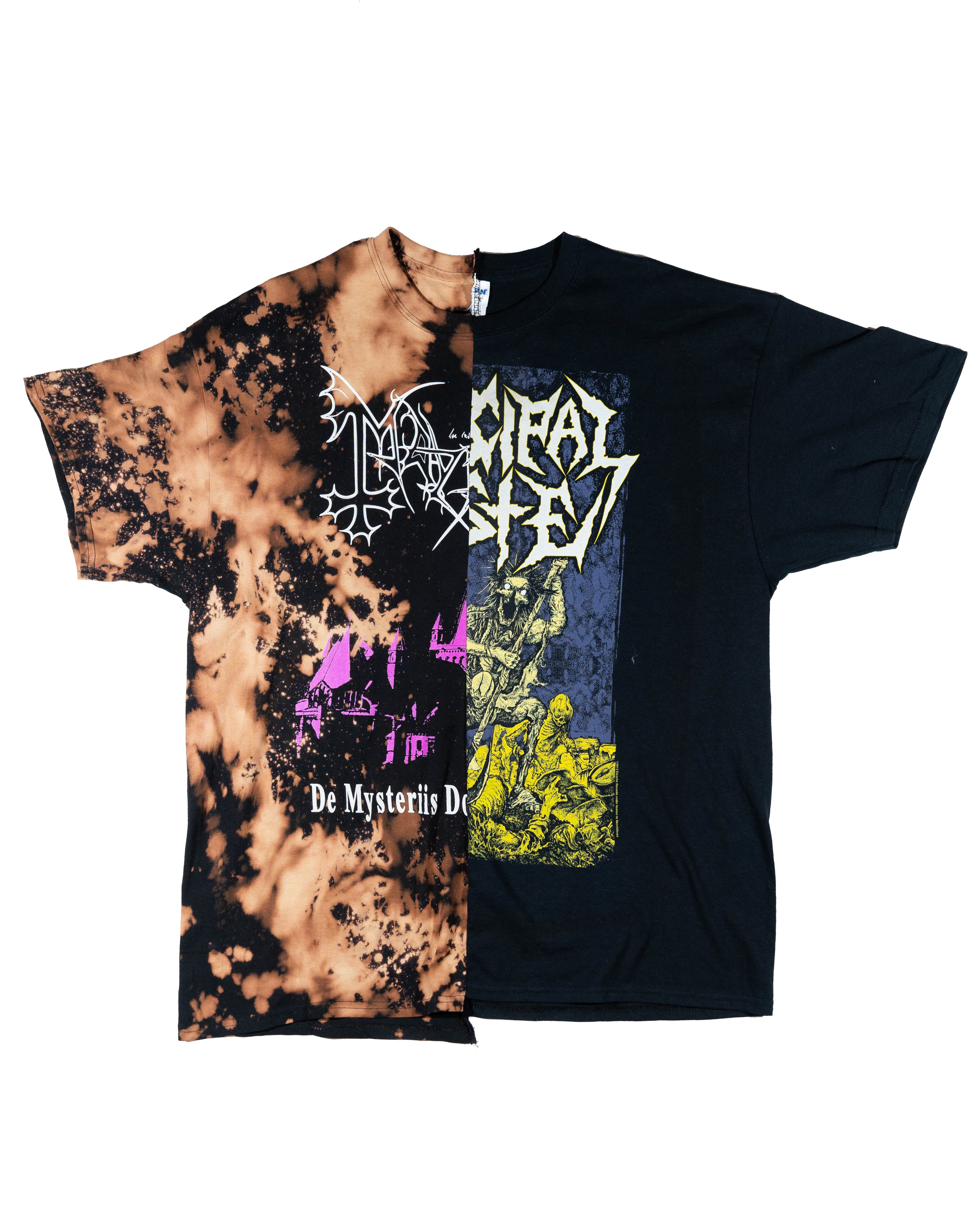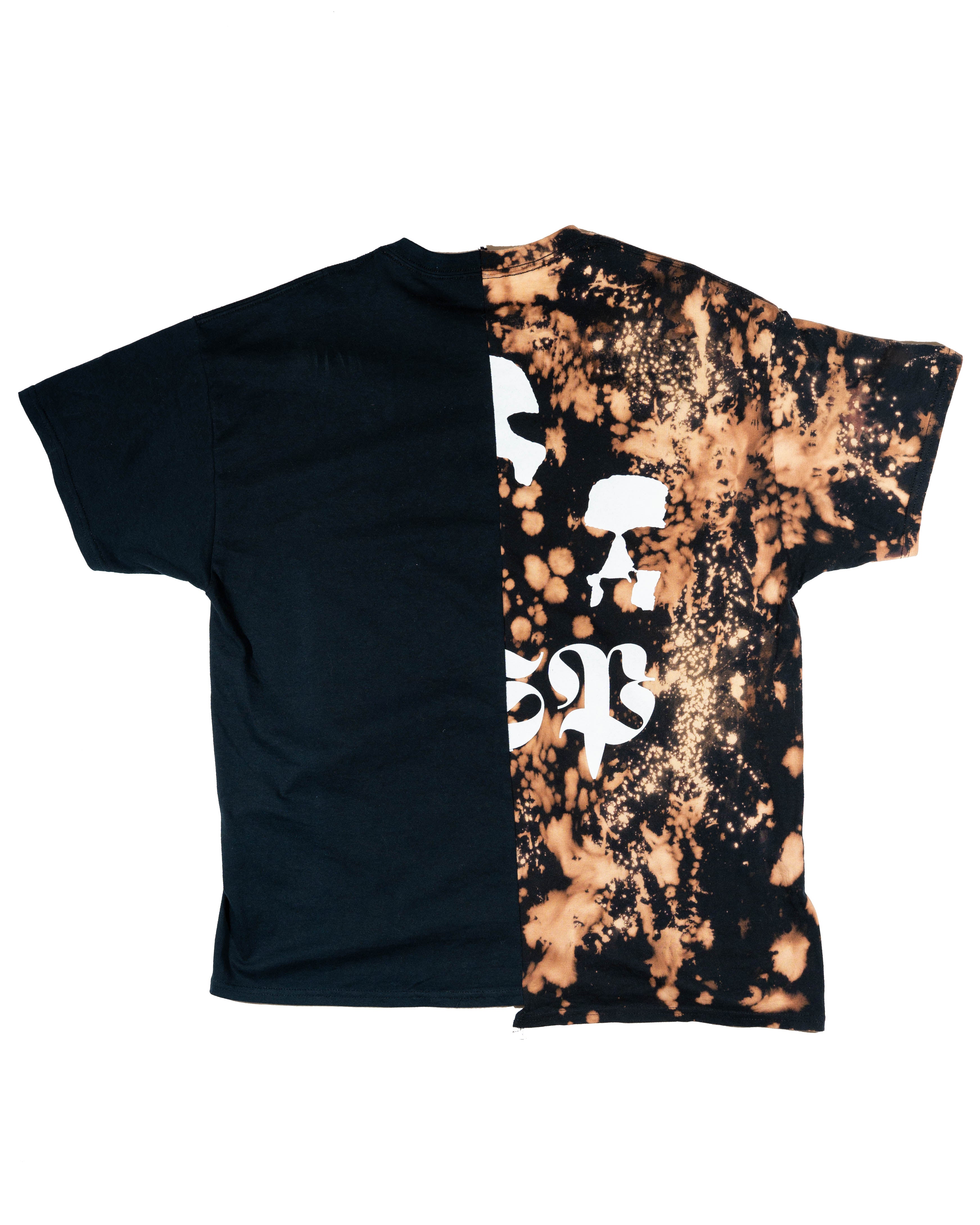 One off shirt, X-LARGE, split tee, hand sewn 50% of the shirt has been bleached. 100% cotton, screen print graphic, with SAYTEN label sew on. All hand made not another one in existence.
