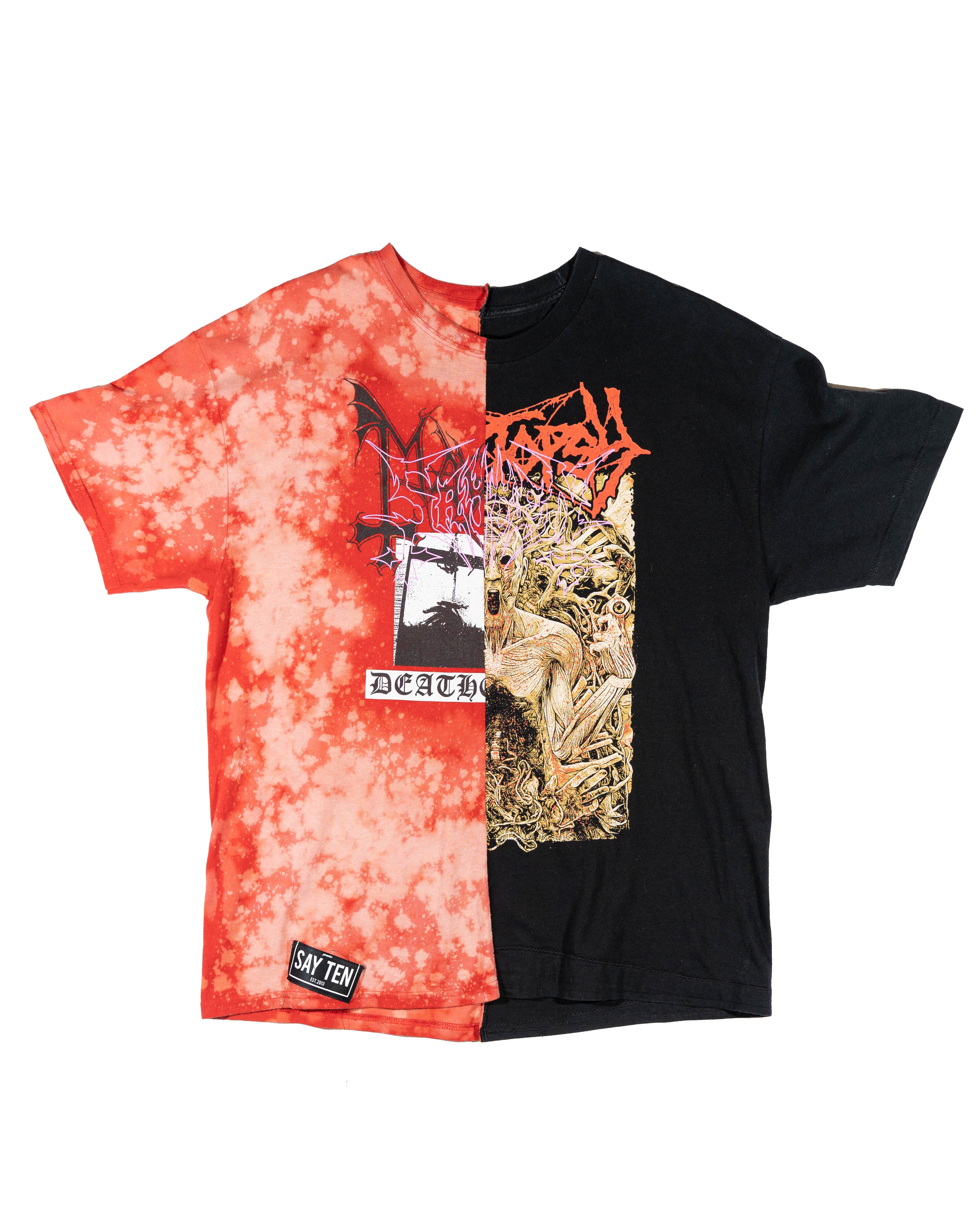 One off shirt, X-LARGE, split tee, hand sewn 50% of the shirt has been bleached on the red side. 100% cotton, screen print graphic with pink panther SAYTEN metal logo screen printed on top, with SAYTEN label sew on. All hand made not another one in existence.