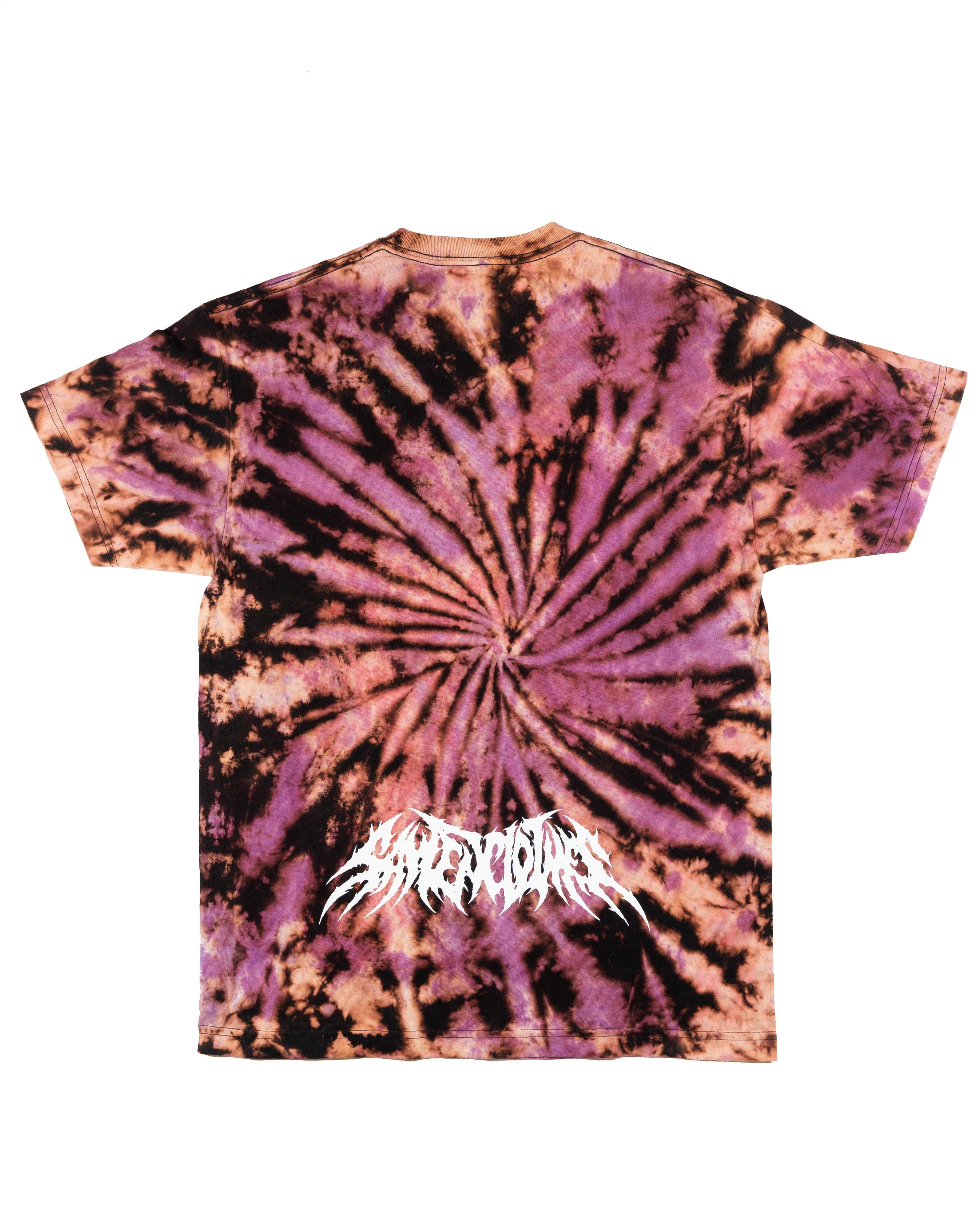 Hand made tie-Die BLVCK & Pink Bleached Tee with cat's and mushroom's Anime Girl. Direct to garment print on the front & SAYTEN logo on the back. Made from 100% cotton.
